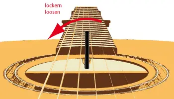 Tuners without a housing (open) are secured by a bearing tube. By applying lateral pressure, check whether this tube is loose. If so, remove it with your fingernail. Then apply a small drop of domestic glue and re-insert it into position.