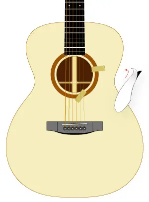 Now you have completed the application of the pickguard.Should air pockets have persisted, work these carefully away to the edge with your finger, taking care not to dent the delicate soundboard surface.